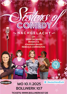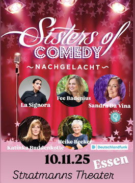 2025 finden die Sisters of Comedy Shows am 10. November statt. Nach und nach werden hier die bestätigten Shows veröffentlicht.